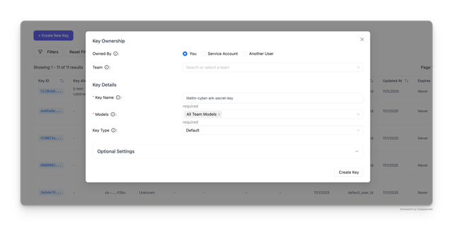 In this example, we create a key named litellm-cyber-ark-secret-key:
